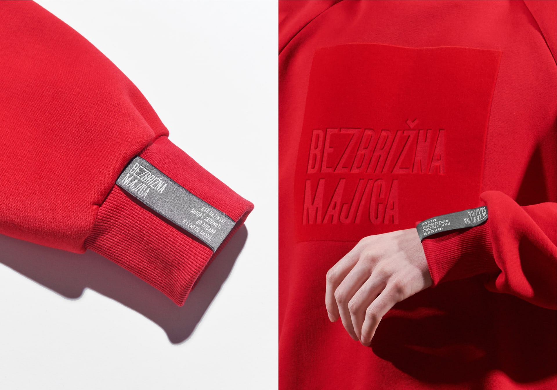 A white sweatshirt with a red print or a red sweatshirt with a white print? Round or V neck? Hoodie, pockets or nothing? These are just some of the worries that we had during the creation and production of this project.