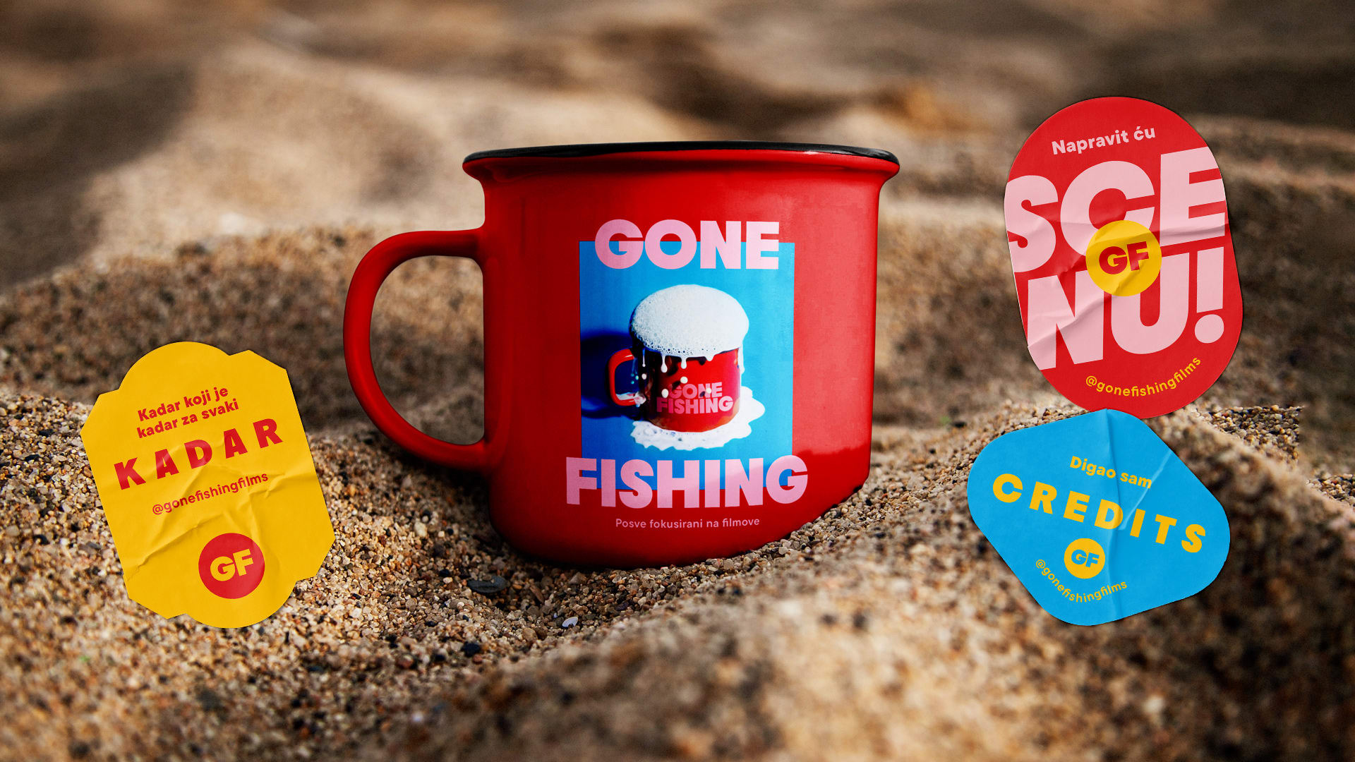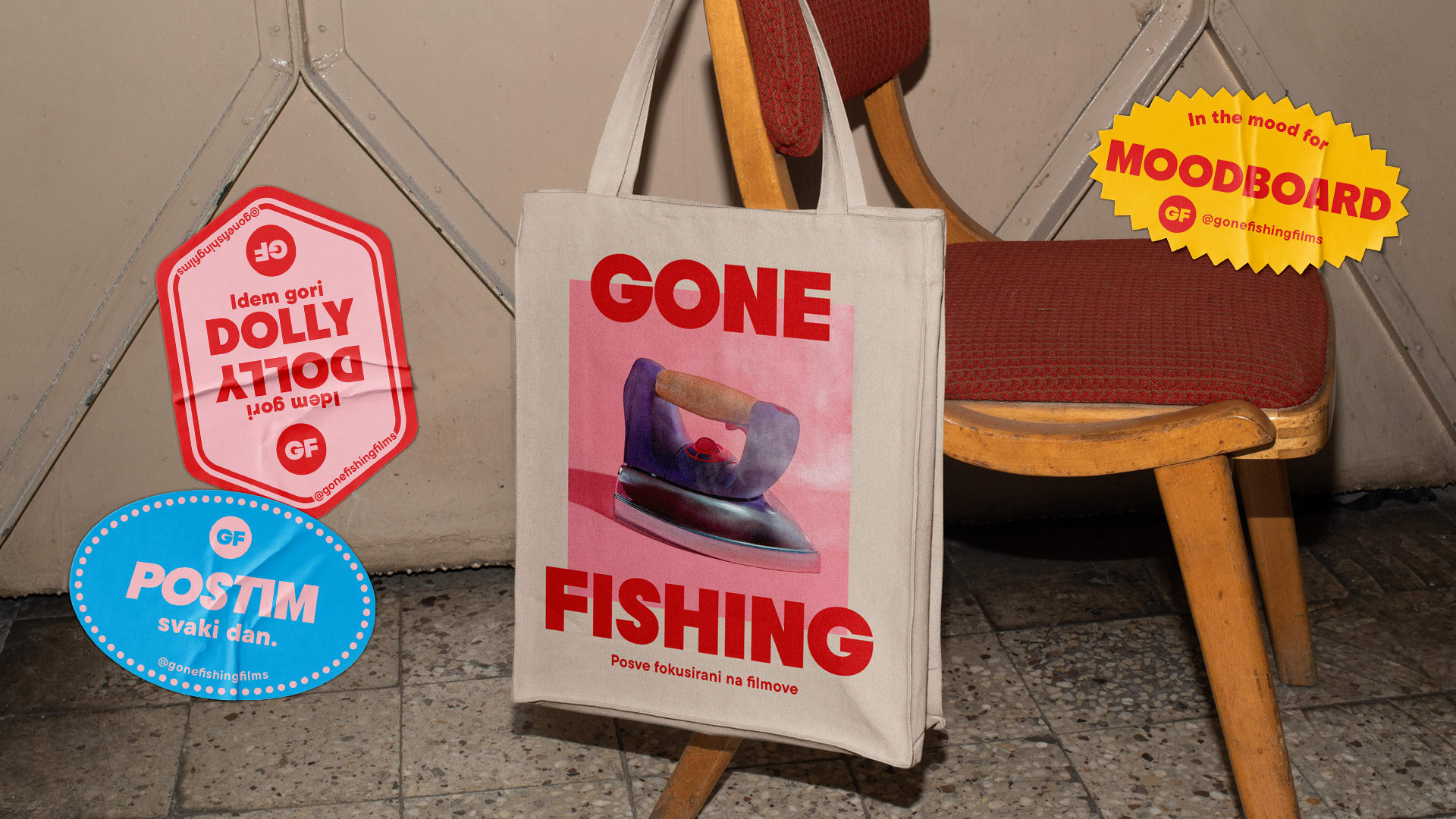 The name Gone Fishing wasn’t chosen for a love of casting a line, but as an English idiom describing a state of mind in which someone drifts off, gets lost in thought, or becomes temporarily unavailable to the outside world. The slogan Totally focused on film communicates this same kind of creative absence, pointing to the fact that the production team has “gone fishing” - to make films.