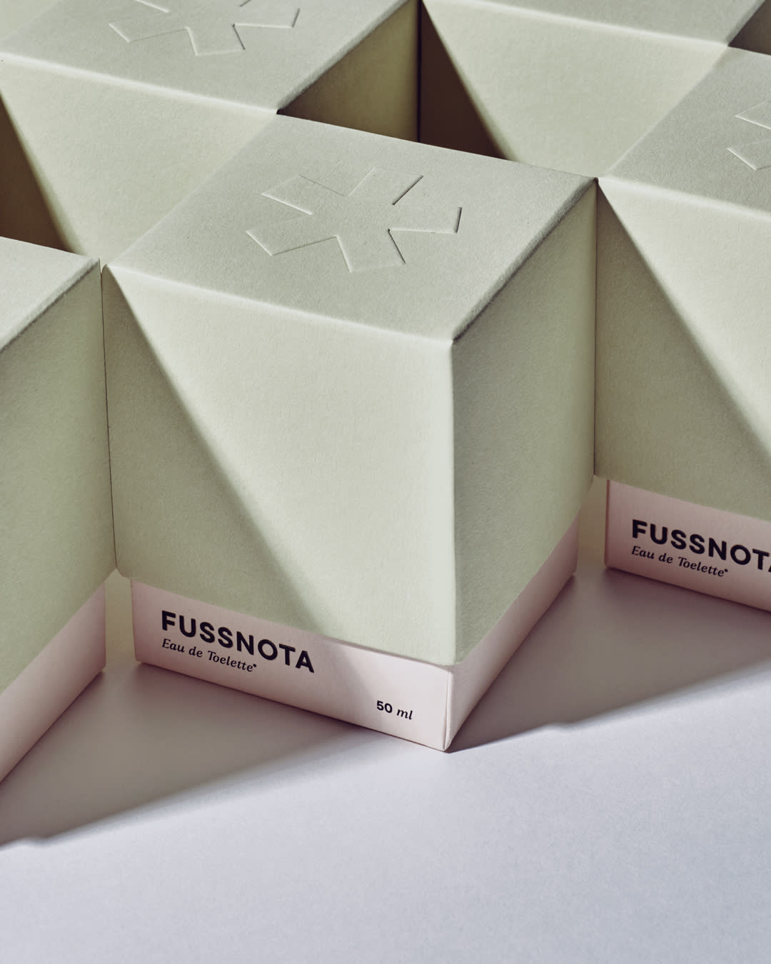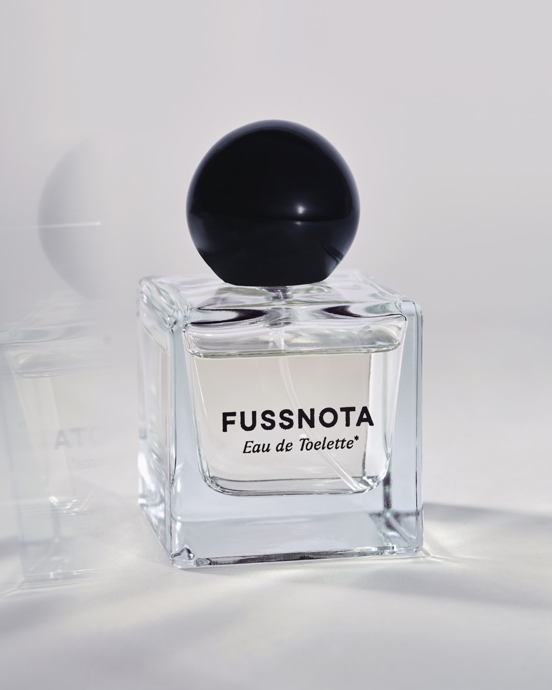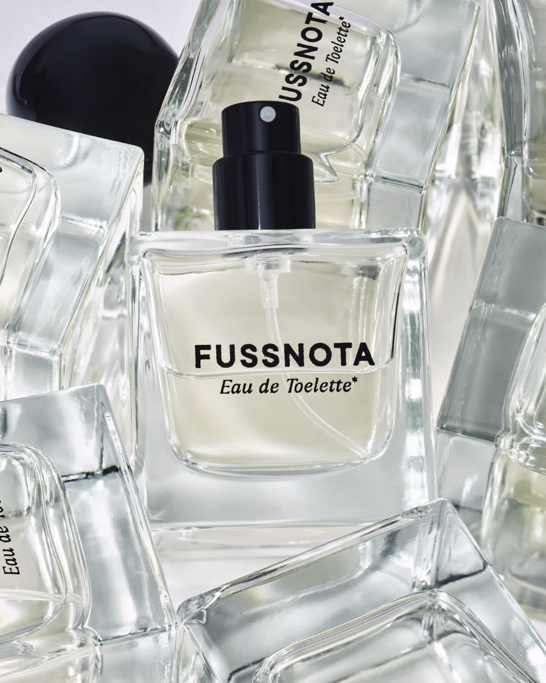 Parfemu smo vrlo ozbiljno pristupili, ovaj eau de toelette je posebno razvijan s hrvatskom parfemskom kućom Sortilège Olfactive Arts, i to mjesecima kako bismo mirisom prenijeli osjećaj rada na projektima s nama - od iznenađenja inicijalnom idejom koja izuva iz cipela do nastavka ugode rada sa Señorom. Nakon brojnih varijacija mirisa došli smo do savršene kompozicije nota - Fussnota je bosonoga šetnja tek pokošenom travom u vrtu bergamota, predah na dekici uz španjolski kolač Bizcocho de Limón pa drijemanje na popodnevnom suncu uz miris obližnjeg cedra.