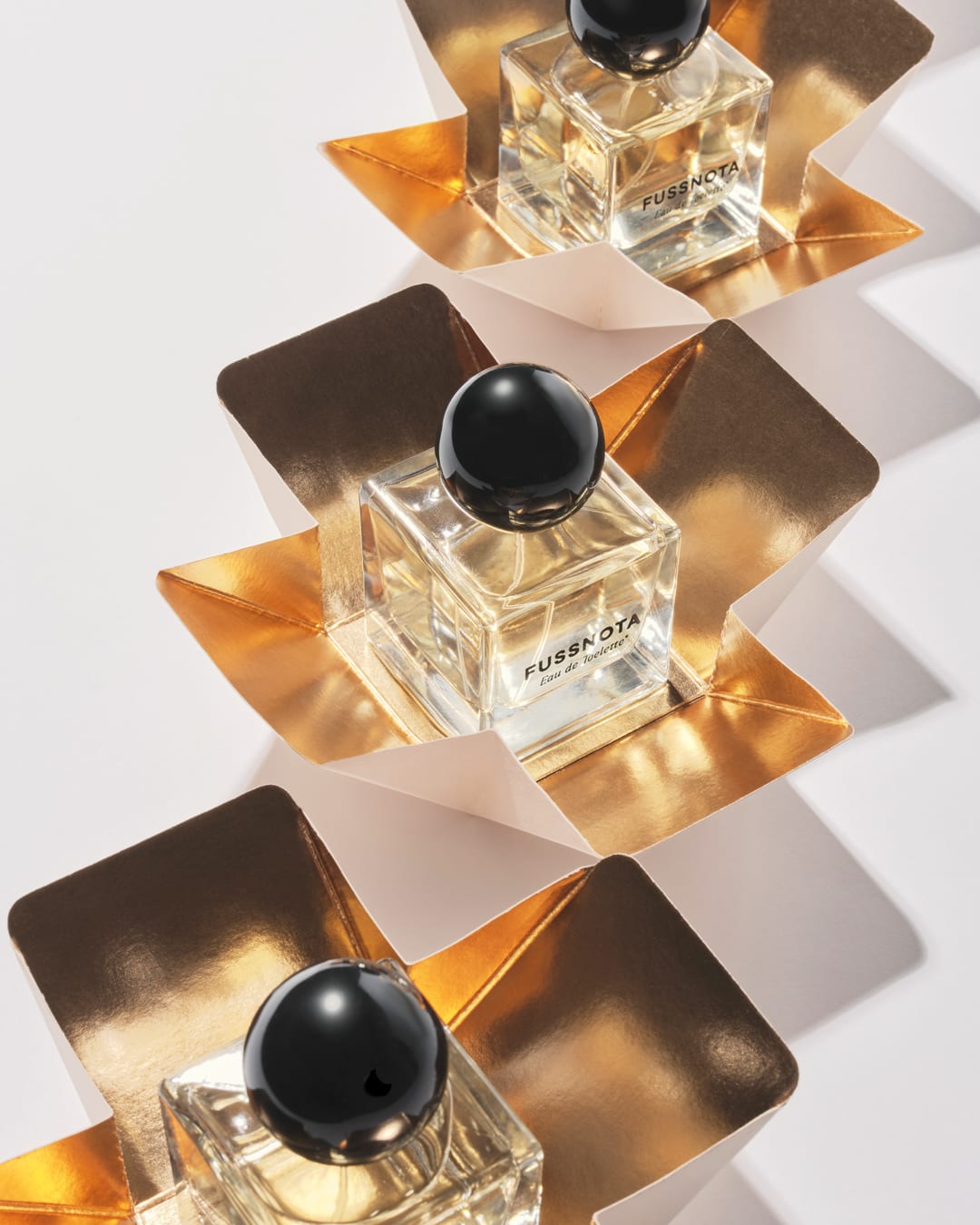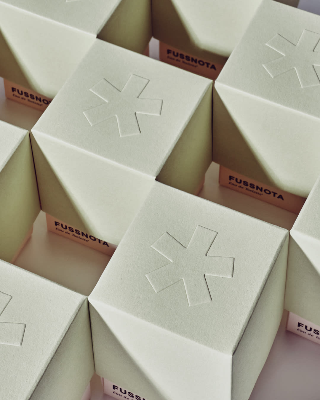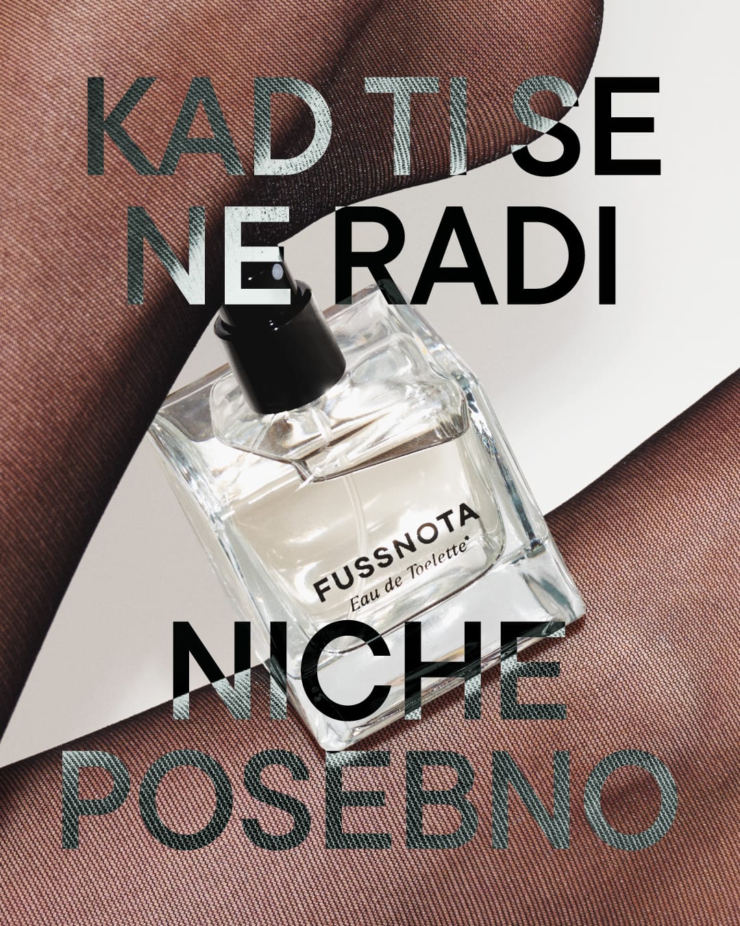 Parfemu smo vrlo ozbiljno pristupili, ovaj eau de toelette je posebno razvijan s hrvatskom parfemskom kućom Sortilège Olfactive Arts, i to mjesecima kako bismo mirisom prenijeli osjećaj rada na projektima s nama - od iznenađenja inicijalnom idejom koja izuva iz cipela do nastavka ugode rada sa Señorom. Nakon brojnih varijacija mirisa došli smo do savršene kompozicije nota - Fussnota je bosonoga šetnja tek pokošenom travom u vrtu bergamota, predah na dekici uz španjolski kolač Bizcocho de Limón pa drijemanje na popodnevnom suncu uz miris obližnjeg cedra.